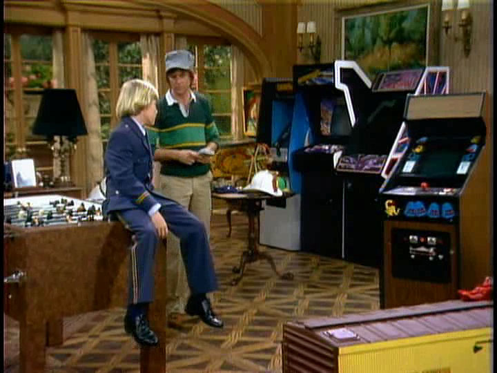 Together, Ricky and his Dad Edward find their way and learn about those things you just can’t buy… but I’m here to learn about those things that were already bought! Like this cool in-the-living-room arcade set-up that made this show every 80’s kid dream come true! Other than the always fun foosball and pinball games, you had cabinets for arcade classics like Pac-Man, Asteroids Deluxe, Tempest, Dragon’s Lair, Gorf  and Ricky’s fictional favorite Swamp Wars lined up against the wall in plain view as soon as you entered The Stratton Mansion! Now in the show, whenever anyone played these games you heard sounds and references to a fictional game. But still, you can’t help but want to actually be in this room!